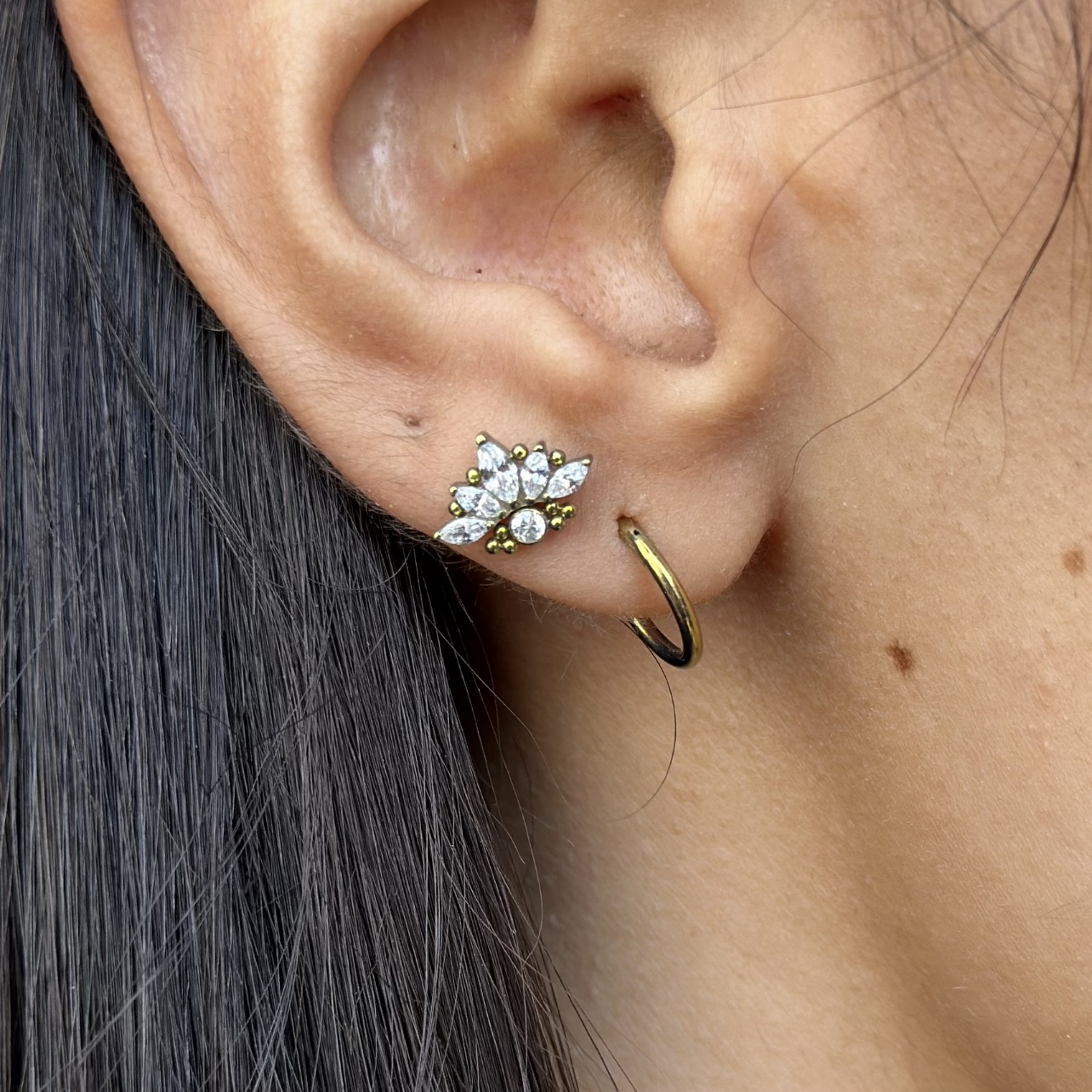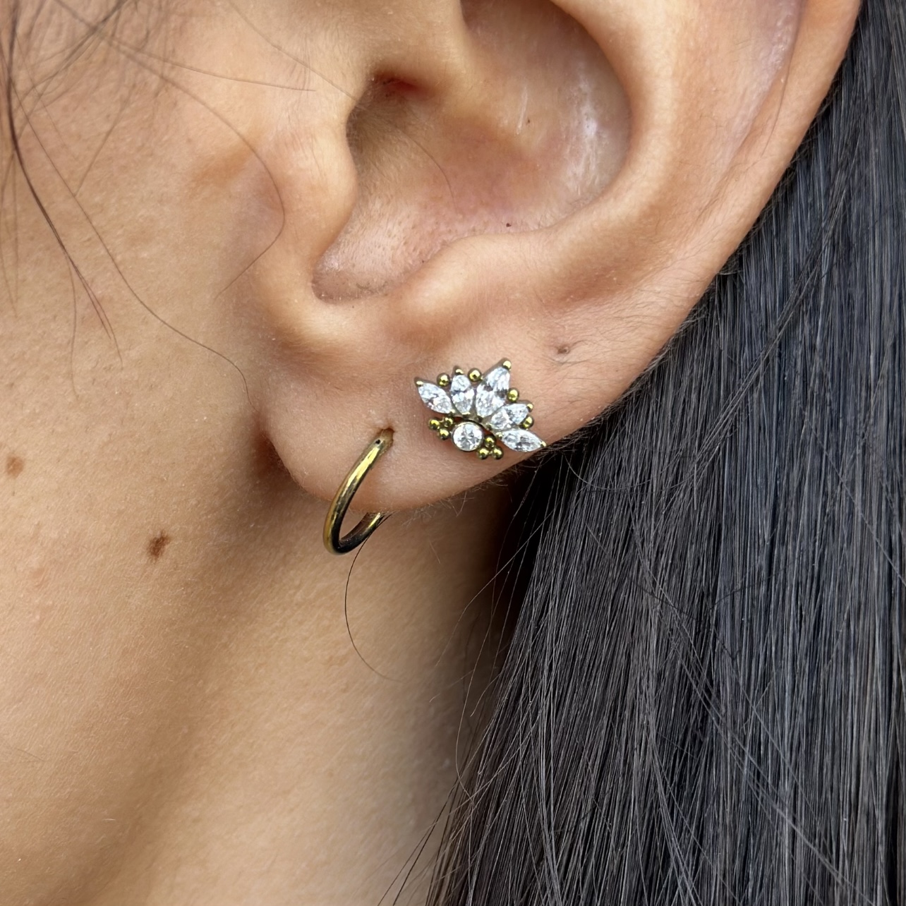 Metal biocompatible, más aceptado por nuestro organismo, ayuda a la cicatrización de tu perforación, las piezas de titanio en color no cambian ya que el color es propio del metal.